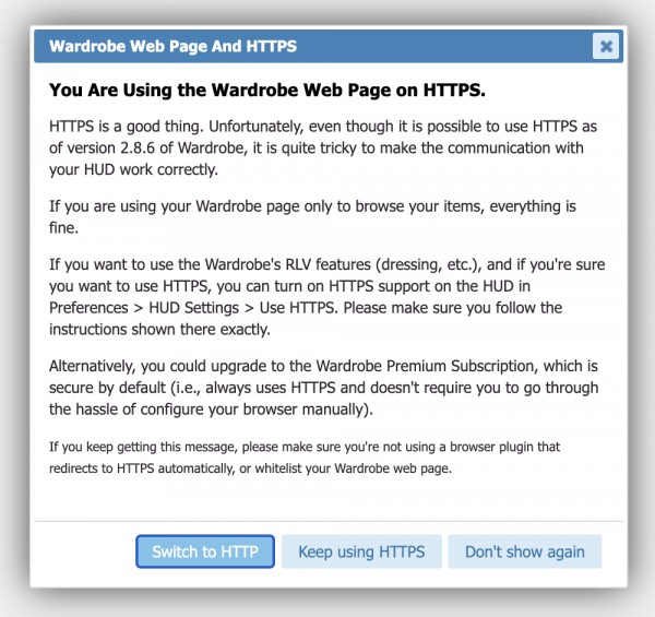 However, for Wardrobe Premium subscribers, the Wardrobe web page works on HTTPS out of the box. So if security is important to you and you don't want to go through the hassle of the setup, consider getting the Premium Subscription (50L$/week).