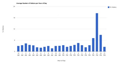 Average visitors / hour of day shows the number of visitors you get per hour of day, averaged over all times. In this example, most of the visitors visited around 9 PM SLT.