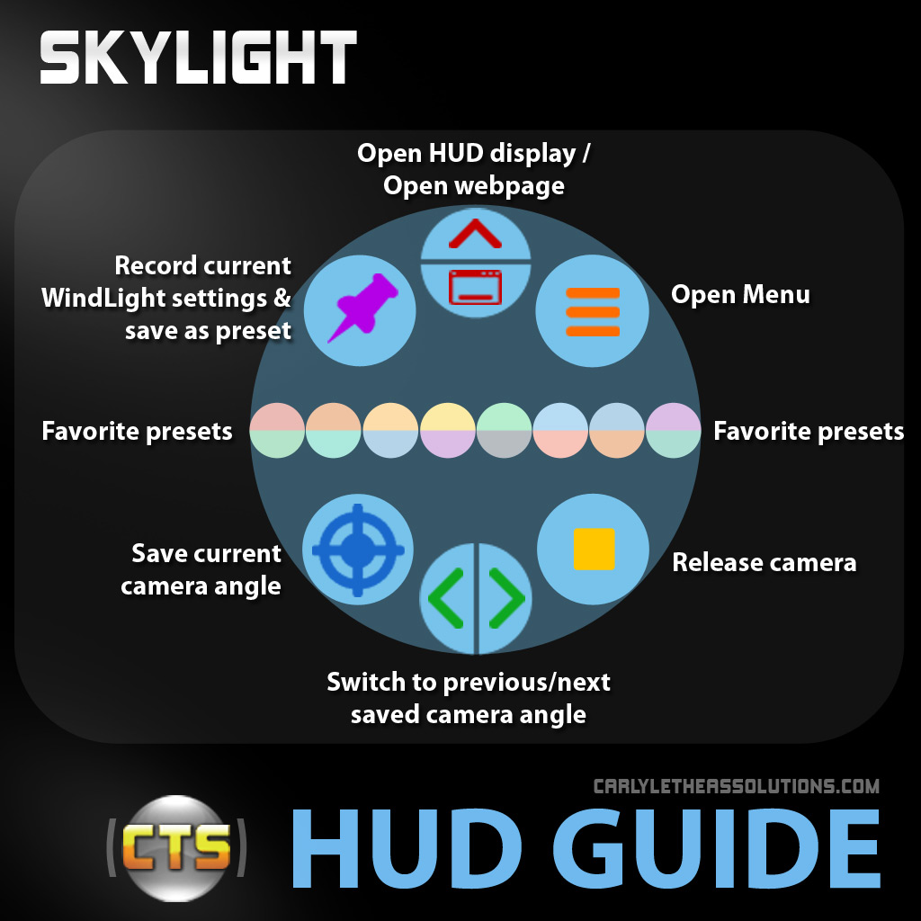 The Skylight is an SL photography tool that makes it easier for you to work with WindLight (SL's natural lighting), and with camera angles.