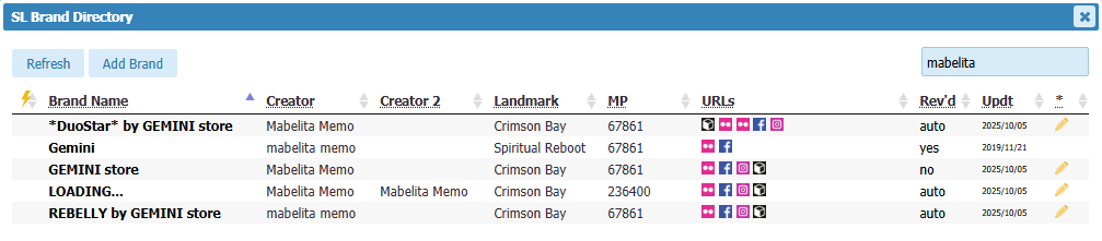 I am the manager of the GEMINI store. I created updated entries for the brand. But there is also an old one with old data and slurl: