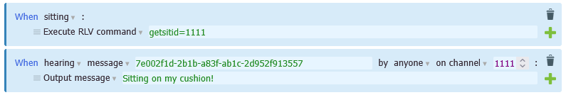 Similarly, the rule does not fire when i sit on the object, but if I say `/1111 <object_id>`, it works.