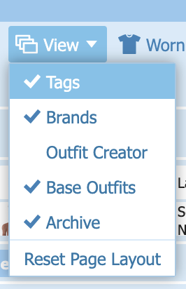 If the Tags Bar isn't shown on your Wardrobe web page, tick View > Tags to show it again: