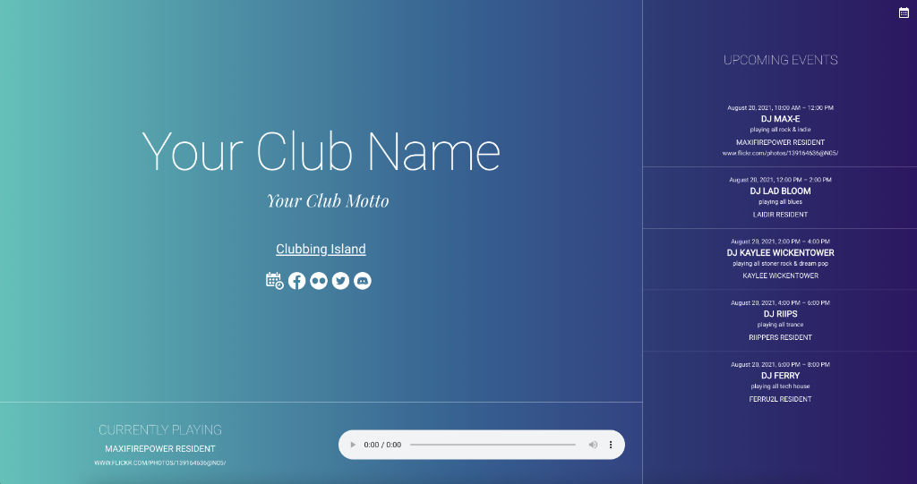 Shows the profile picture of the DJ and the event name if an event is going on